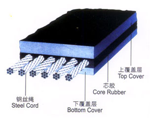 普通結構型鋼絲繩芯輸送帶特點: